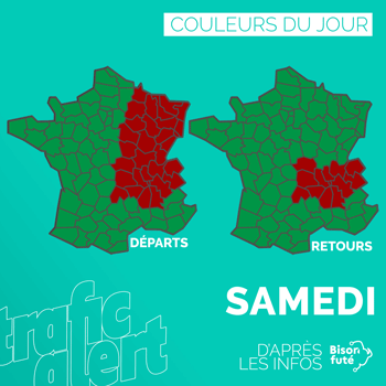 BRIEF Troisième week-end de vacances, toutes les zones en congés et un trafic concentré sur le samedi aux abords des Alpes en rouge, attention au trafic aussi sur l’ouest.