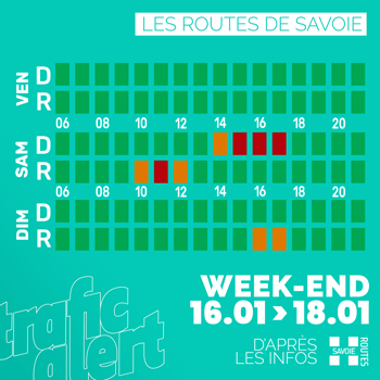 Les montées vers les stations sensibles surtout depuis Lyon via A43, chargées de 16 à 22h avec un pic de 18 à 21h. Le contournement est de Lyon chargé en après-midi.
