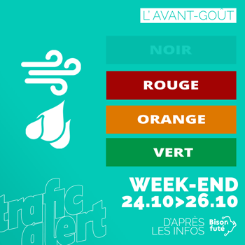Bison Futé le prochain week-end, une coloration plus marquée allant jusqu’au rouge et météo agitée amplifiant les difficultés