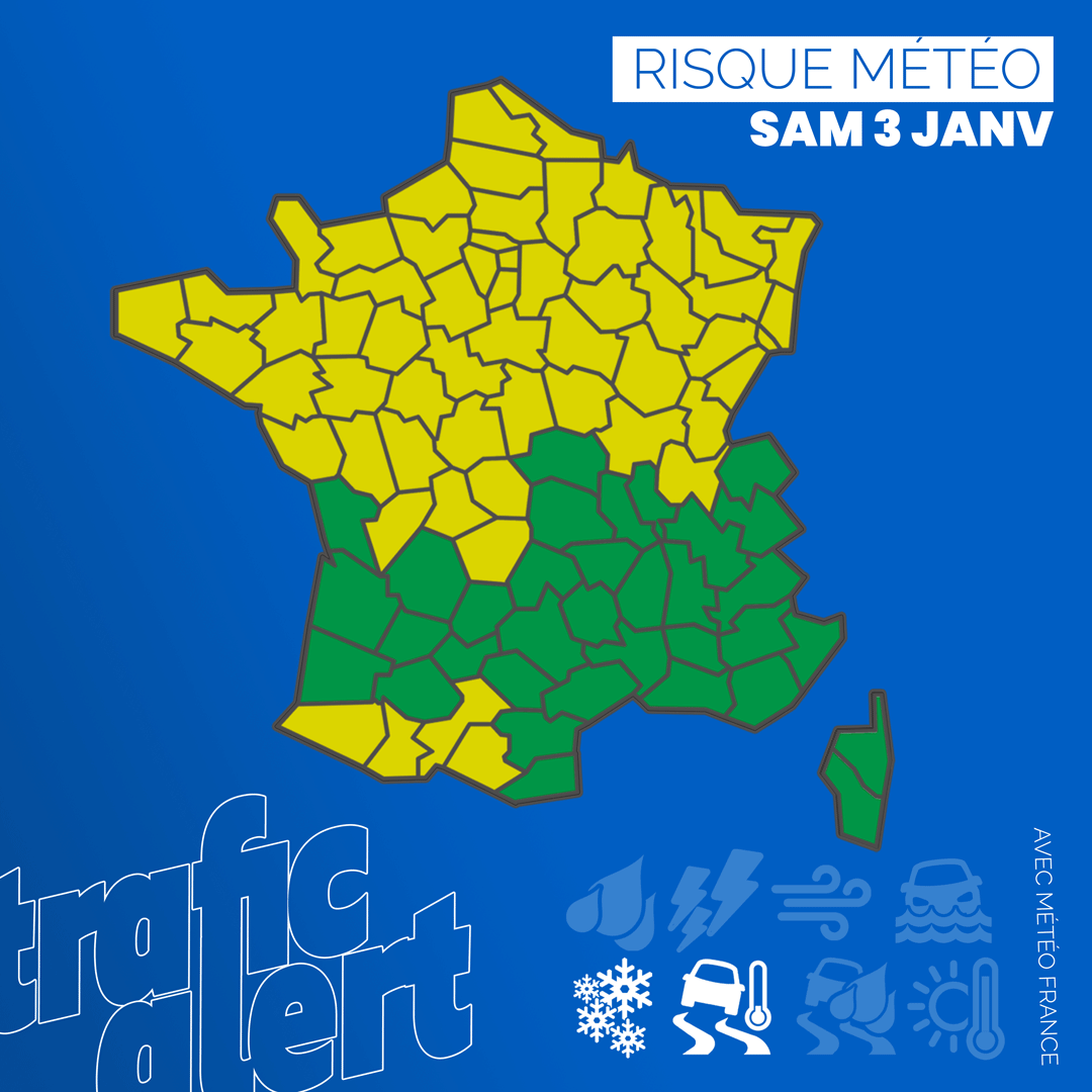 À RETENIR Des chaussées potentiellement glissantes avec neige et verglas sur la quasi intégralité du nord pays, 62 départements en vigilance jaune ce samedi.